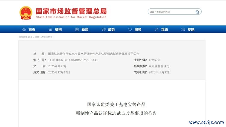 12月22日,《国度认监委对于充电宝等居品强制性居品认证瑰丽试点校正事项的公告》发布,对充电宝、燃气点火工具、电动自行车等高风险居品捏行CCC认证瑰丽试点校正。